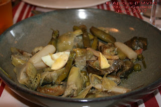 La menestra que vino, tenia un aspecto impresionante, pero lo que veis, después de haberse servido mi mujer, volvió para la cocina. Creo que es la primera vez que me pasa no estar en condiciones delante de un plato. Tuve que pedir disculpar y decir al Chef que no me encontraba bien.