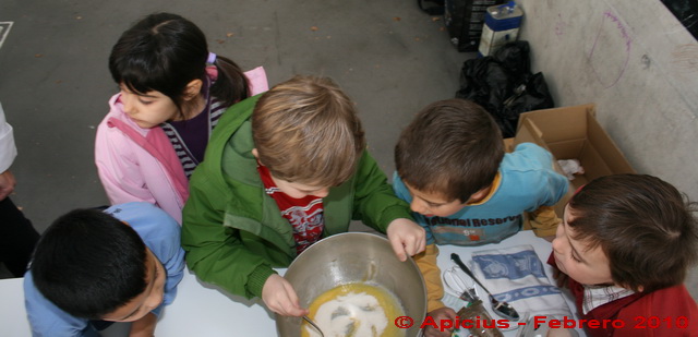 Aquí ya los niños comienzan a participar en la preparación de la masa de las rosquillas con las cantidades correspondientes de cada ingrediente.